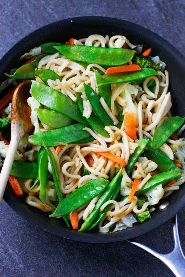 Veggies and noodles make a quick weekday meal. Keep it vegetarian or add some grilled chicken or shrimp, a side of artisan bread, and there you go. Dinner in no time at all!